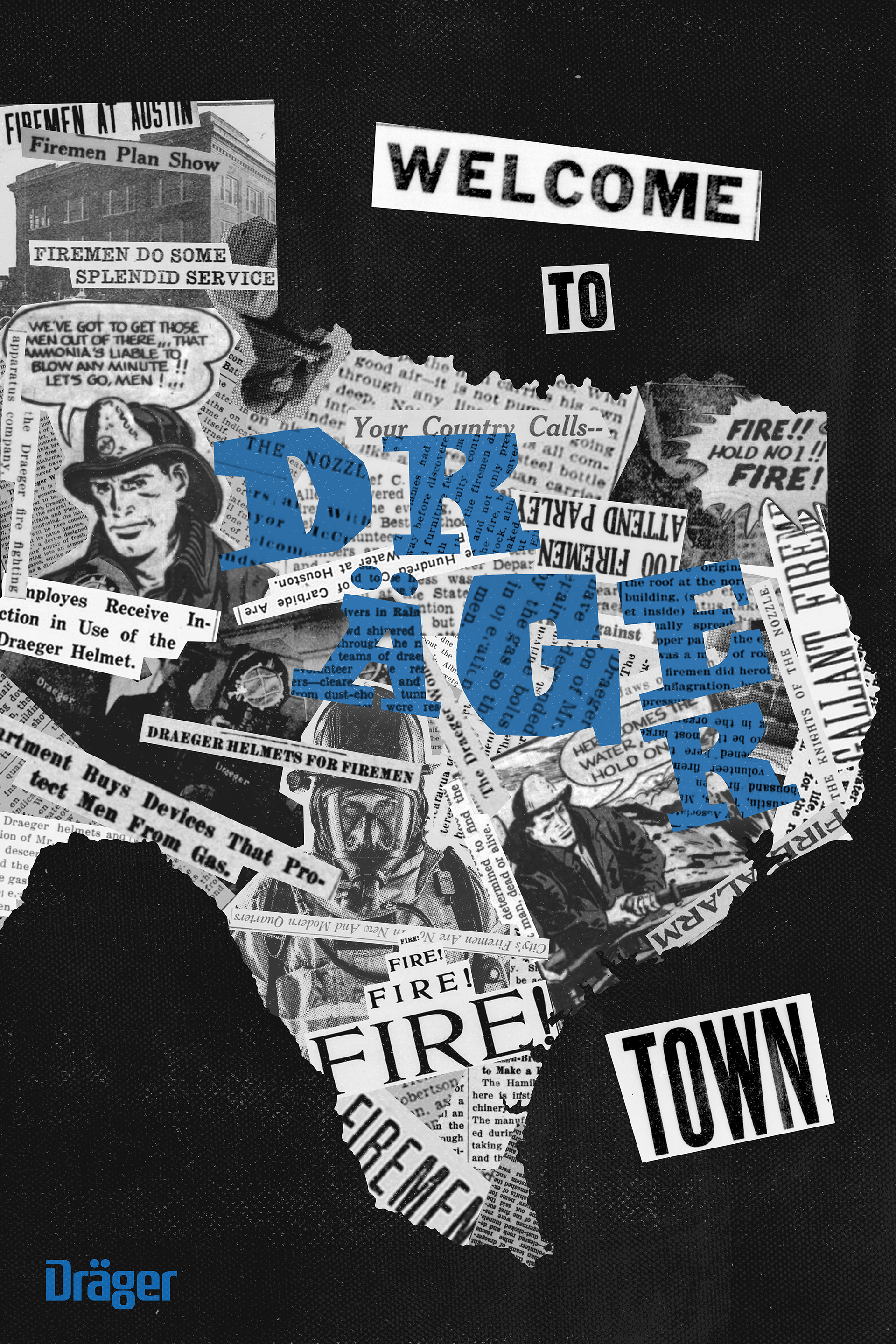 A proposed, but ultimately unused poster design to decorate a tradeshow booth display utilizing real, vintage newspaper clippings.