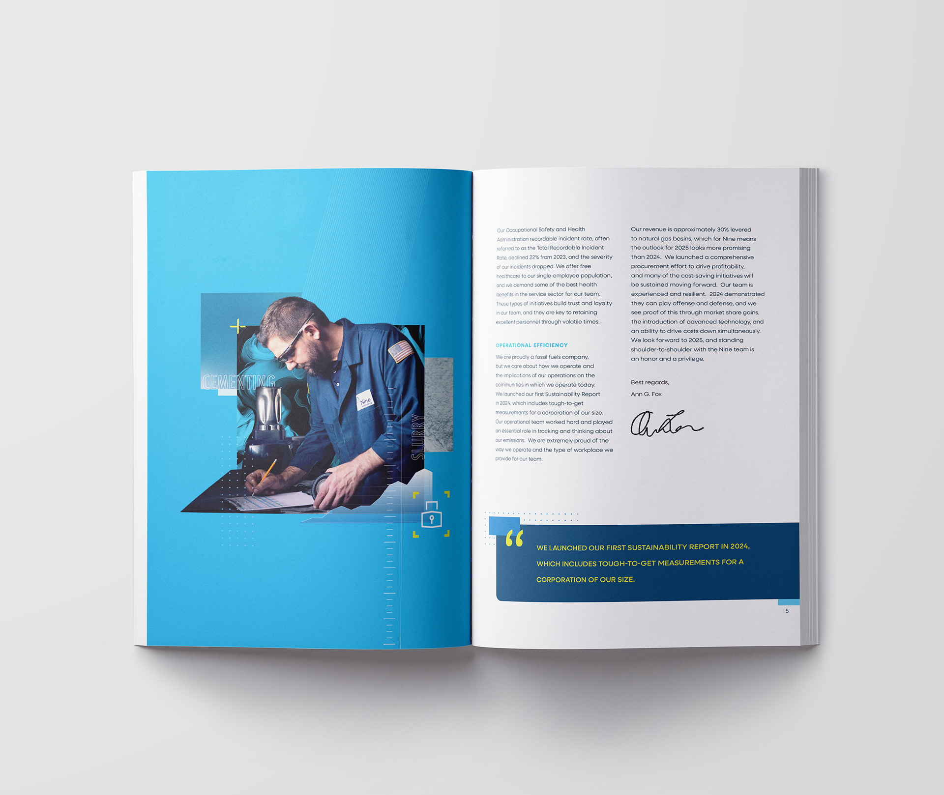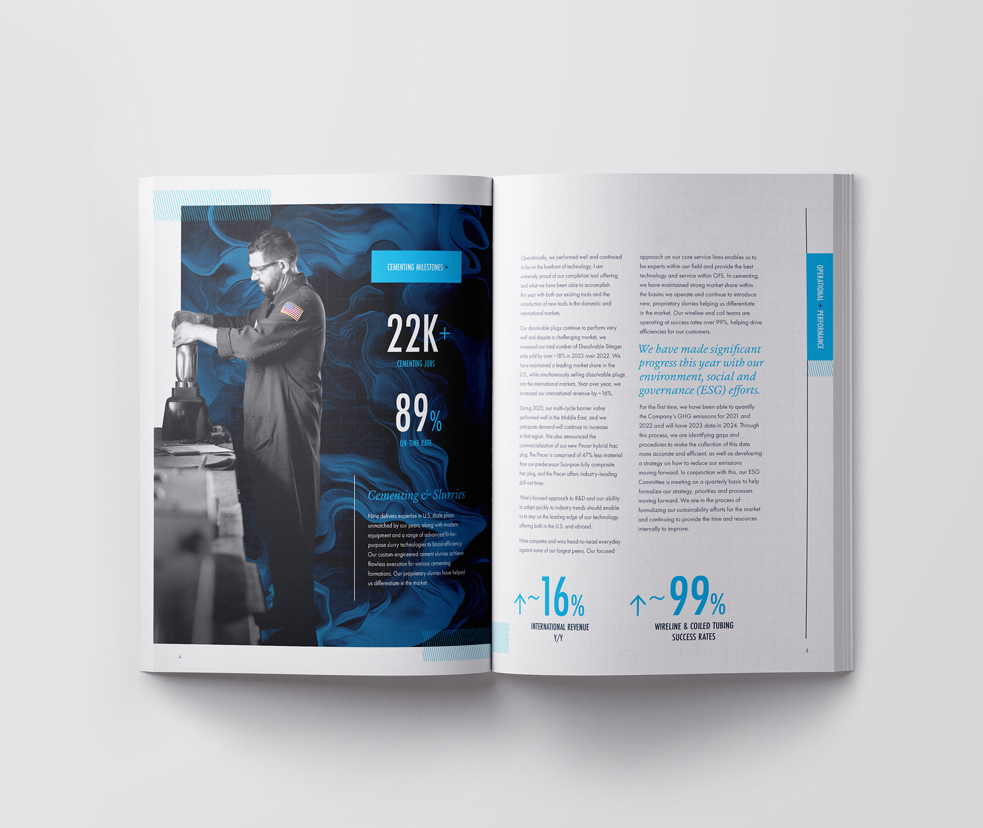In the 2024 report, the theme and design needed to be honest about a trying year while still representing the company's continued push through the pressure. The company also underwent a brand refresh that was ultimately celebrated with the printed design.
